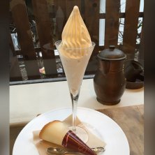 さて、圧巻はこちらのCREMIA ランドシャコーン添え!(^_^;) 半端ない高さと気品のソフトクリームです!(^_^;) 普通のソフトクリームよりも堅めで、しっかり歯応えがあります。そうでないと、この外観が保てないでしょう! 濃厚なクリーミィさが何とも贅沢です! 食べに来て良かったです。(^◇^)
