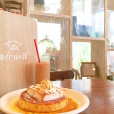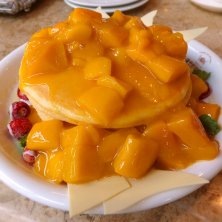 ウ~~ マンゴ~!!! (ง^0^)ง❤ 『マンゴーソレイユ “夏の太陽”』 @accueil 大きなパンケーキとともに、 マンゴーが並々と入ったコップがお出ましっ! マンゴーでパンケーキが見えませ~ん (←嬉♬) 缶詰マンゴーを使うお店も多いのでは? と思いますが、 フレッシュなマンゴーでした、しかもこの量! 大, 大, 大満足です! ひとあしお先に夏休み気分~♪ …な七月最終日♪