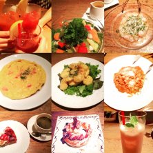友人の誕生日のお祝い サングリアで乾杯 ★サラダ 特製オレンジのドレッシング ★スズキのカルパッチョ 薬味サラダ添え ★フリッタータ ★ポップシュリンプ ★タリアテッレ ボロネーゼ ★ベリーパフェパンケーキ ★スムージーカクテル パンケーキ好きな女子のために選んだお店。フレンチベースなパンケーキカフェ…。外観からして可愛すぎた…。