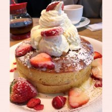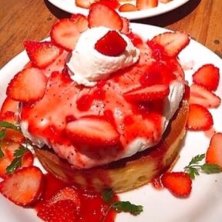 いちごベリーパンケーキ!結局パンケーキも!笑 ペタンコ、スカスカ系と全く別物のどっしりもっちりパンケーキです!美味しい! けど自分でもよく食べれたなと思うボリューム笑 ベリーソース苦手なのでお願いして別添えにしたのでいちごパンケーキですが、クリームがさっぱりなのにコクのある感じがマッチして美味しかった♡フルーツも普段食べないので良かった。