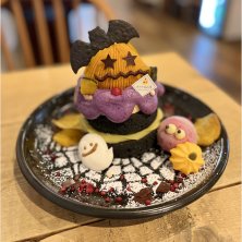 ハロウィンパンケーキ 可愛いんだけど、芋とかぼちゃ好きじゃないと途中からはキツい。逆に芋とかかぼちゃすきならパラダイスかも。私は前者。