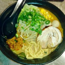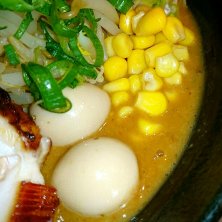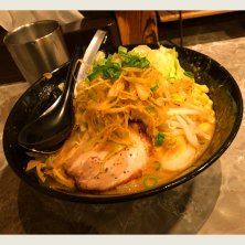濃厚味噌ラーメンです。 本当に濃厚でおいしい❣️ まさに味噌ポタージュです! つけ麺もきになる…! 前回は白髪ねぎトッピングでしたが、今回は辛白髪ねぎにしました。私は辛のほうが好み!