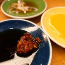 にんにくなんばを たっぷりと🤍😻(左上) 肉タレ からし みのタレ(少し酸味がある)+白葱 レモン酎ハイ2杯目🍋
