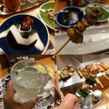 続きまして… 二軒目 美味しい焼き鳥屋さん秋吉♪ ✳︎ねぎま ✳︎タン塩 ✳︎シシトウ ✳︎つくね ✳︎梅酒 ✳︎ビール