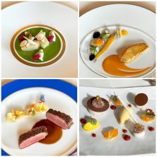 LA MER: 1, PÉTALES D’ORMEAU: marinés à la sauce vierge, crème onctueuse de fenouil au pastis & légumes d’Été à la Niçoise 2, FOIE GRAS: à la chutney de mangue aux baies de la passion, gelée de Muscat du Cap Corse & coulis d’avocat 3, FILET DE BOEUF: auxb