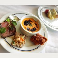 サマーランチブッフェ『チーズ チーズ チーズ』~Summer Lunch Buffet “Cheese Cheese Cheese”~ ホテルニューグランドのメインダイニング「ル・ノルマンディー」はたまにビュッフェを開催する、今回はチーズ料理がメイン。いつも品数は少ないけど、落ち着いた雰囲気がいい♫
