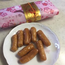 東京三大かりんとうのひとつ。 実は唯一食べたことなかった 湯島の花月。 職人が砂糖を煮詰めてしまい、失敗作から生まれたという飴がけのかりんとう。 ⚫︎単衣 ¥540 温度の違う油で3度揚げ、艶やかでやや厚めに飴がけしている分 甘みと歯応えがあっておいしい。 老舗なのに腰が低くく「よかったら食べて下さい」とちょっと飴が欠けたものなどを詰めたおまけのサービスも。