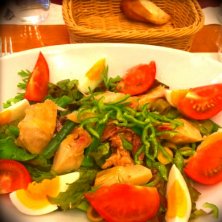 会社に近いビストロでサラダプレートのランチ。白いんげん豆の冷たいスープとツナとアンチョビがたっぷり入ったニース風サラダ大盛り!昨夜暴飲暴食したので(._.)今日はヘルシーに!