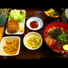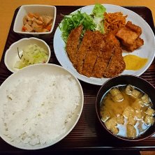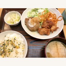 #lunch #和風ハンバーグと鳥の唐揚げ定食 #和風ハンバーグ #hamburgsteak #トリカラ #唐揚げ #ライスおかわり自由 #のりたまかけ放題 #居酒屋ランチ #升亀 #品川 #品川ランチ #830yenlunch