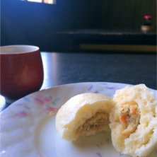ちょっと遅いけどお昼ご飯。 小さい頃から食べてる「一休庵」の饅頭。 左から肉まん、クリームまん、 大島まん(つぶあん)。 私が購入したので肉まん終わりだったみたい。 ラッキーだった( *´艸`)