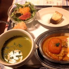 東京グルメ探訪! 新宿区、新宿三丁目編 創業2005年、新宿三丁目にオープンの評判の店 名物リーズナブルなワンプレートランチ! 人気名店「クレッソニエール」初訪問! 丸ごとトマト肉詰めローストが卓上に配膳される 本日のスープはカボチャの特製スープと説明され 口へカボチャの甘さ控えめ仄かにビター絶妙旨! サラダはトマト細切り人参ドレッシング味良し! トマトの蓋を開けると中に挽肉がたっぷり入り! 口へ運べば甘酸っぱさが口に拡がり味良し絶妙! トマトの酸味と肉の旨味マッシュで抜群絶妙旨!