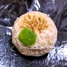 若松 漉し餡をたっぷり中に入れた小麦粉の饅頭の表面のつるんとした皮を剥いた朧饅頭です。そして小麦粉の生地には醤油が入っていてちょっぴりしょっぱいです。この仄かなしょっぱさと漉し餡の甘さのバランスが素晴らしくてとっても美味しいです。