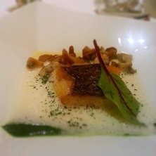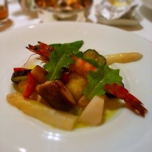 前菜がフォアグラだったので差し替えていただきました。 九州産車海老と甲イカ、春野菜のサラダ仕立て ジャルディニエール風 サフラン風味のムースリーヌ 色とりどりのプチトマトと共に。 イカが柔らかい~(〃∇〃)