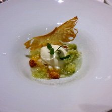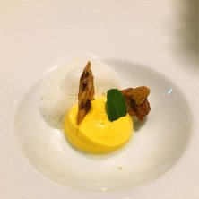 昨日の友人の結婚披露宴 雲丹を乗せたイタリア産ブッラータチーズと人参のブラマンジェ ヴェルヴェンヌのエミュルション ほろ苦いカカオの食感 後半噛みそうだし、さっぱり何のことかわかりませんが、美味しかった^_^