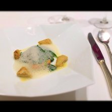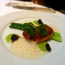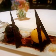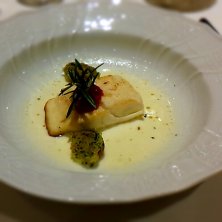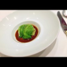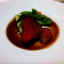 レストランひらまつにて 低温オイルで火を入れた和牛イチボ肉 香草風味 黒胡椒風味の赤ワインソースで