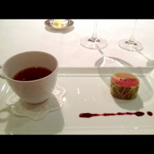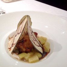 フォアグラのソテー、りんごのキャラメリゼ。立ってるのは、ナス!