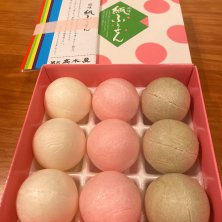 ☆風味 紙ふうせん 同時期に金沢へ旅行に行っていたお友達からいただきました。 古くから伝わる色とりどりの『加賀もなか種』と可愛いゼリー(錦玉)中には赤ブドウ、白ワイン、黄レモン、黒糖風味のアラカルトです。 箱を開けた瞬間、丸い形のもなかに思わず「可愛い♪」と声が出ました。 こんなに可愛らしいお土産など見る余裕がなかった私達に、嬉しい心遣い…感謝です♪