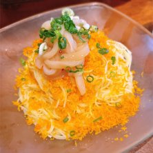 今週のカッペリーニ。 今シーズンのランチカッペリーニは今週でおしまい。 最後はイカとカラスミの和風カッペリーニ。 これは、、、お酒と楽しみたかったー。 在宅とはいえ、勤務中のランチなので泣く泣くノンアルで。