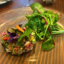 若鶏の赤ワイン煮込みとボジョレーヌーボー。めちゃウマ。 八王子フードフェスティバル、クーカル収穫祭。 八王子市内の名店の自慢料理が屋台プライスで食べ比べできる良い企画。今日と明日の二日間開催。
