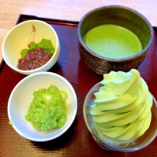 お連れ様は甘味セット 抹茶ソフトほか2種類選べます ずんだ餅とわらび餅をチョイス お抹茶がつきます🍵