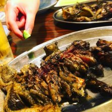 かぶりつきたくなる地鶏炭焼。 バラす?No‼️かぶりつくので、バラさないで〜。 口の周りピカピカに汚して食べる醍醐味。ビールがグイグイ行く^ ^