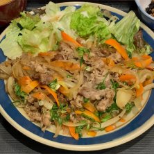 夕食は牛焼肉定食 お腹いっぱいです