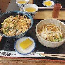 お昼ご飯 親子丼セット きなこ餅 和歌山に来たら絶対食べたくなります。卵とろとろ親子丼とお出汁がよく効いたうどん ほんま美味しいわぁ*.⋆( ˘̴͈́ ॢ꒵ॢ ˘̴͈̀ )⋆.*