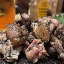 地鶏の溶岩焼き❗️後ろに見切れてるハイボールと生ビールが良い感じ🍺🥃