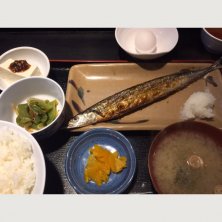 焼魚定食のサンマ。 ほかに冷奴の三升漬け添え、昆布の佃煮、味海苔、漬物、味噌汁。生卵サービス。 例年より小ぶりでも、秋の味覚を頂けるだけありがたい。 しかも消費税アップにもかかわらず料金据え置きの650円。 ありがたや〜