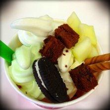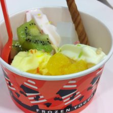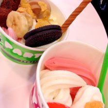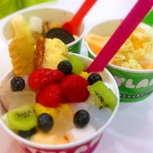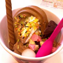 手前のチョコら山盛りゎチキ ワタシゎオレンジ、ピーチ、パイン、ノーマル