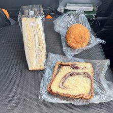 今日のお昼ご飯 トミーズの あん食トースト 目玉焼きトースト カレーパン いただきます( ^ω^ )