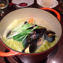 広島産大粒カキとお野菜の白ワイン蒸し(税抜1,280円) 広島産にこれだけの大粒カキがあるのね!カキの旨みが溶け出したスープもめちゃ美味い! #フレンチ #フランス料理 #菜厨瑠 #ナチュール #船橋
