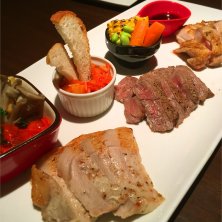 船橋 肉屋さんの網焼き3種盛りと3種のお野菜