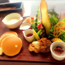 ランチタイム♩ ほとんど野菜ですが満腹♡ パンケーキは食べ放題でしたが満足でおかわりしませんでした^ ^