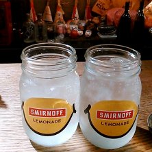 10周年のお祝いに豚串屋さんにてスミノフで乾杯 グラスが(。・͜ ・。)でカワイイ〜❤