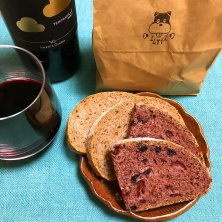 ワイン・チーズに合うパン🍷 近所の(近所の範囲が広い説、笑) 材料こだわり系、人気のパン屋さん🥖🥪🍞🥐 手前の赤いの 水の代わりにオーガニック柘榴ジュースだけで、生地にブルーベリー、カシス、クランベリーの果実いり✨ 奥の ライ麦50%使ってハイビスカス🌺を使った仕込み水で作っている✨ 少なめを買ったけど、密度が高く1枚の食べ応えが凄いので、なかなか減らない('ロ'('ロ'('ロ'('ロ' )