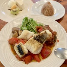 【スズキのソテーアンチョビソース】 午前中の客先打ち合わせを終えて 午後の打ち合わせ場所の近くに移動してランチ🍽️初めて降りた都営新宿線の大島駅近くで良さげなフレンチビストロがあったので入ってみた パスタか肉料理か魚料理の3択のうち 魚料理のスズキのソテーをチョイス ラタトゥイユとパンも一緒についてるのがいい 久しぶりのフレンチ料理を美味しく食べた後 パンナコッタとシャーベットのデザートも付いていて打ち合わせ前にゆっくりクールダウンできた😋