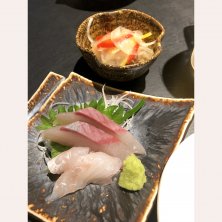 19.7.12夜 昼は寿司で19時位に仕事が終わったので客と夕飯に。 居酒屋で突き出しと小刺し盛り。まあまあですかね。色々仕事の話で盛り上がり終電ギリとなり帰りました。 そのうち泊まって土曜はゴルフしたいな。 キツかったけど楽しい出張でした!