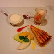 デザート♡ イチジクのタルトうま〜(*´艸`*) 白色のはコーヒーの味がしてビックリ♬ 全て美味しかった♥ごちそうさまでした♡