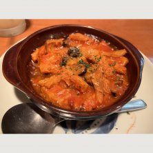 前菜。タコとトマトのカルパッチョ。トマトとキュウリのサラダ。メインは鯵のカリカリ揚げ、大根と牛肉。デザートにシャーベット。あ、あと手羽焼きも。コーヒー付き。満足でした。ただ席数は少ないから予約した方が無難。
