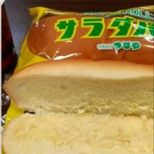 サラダパン 昨日、滋賀県の木之本にあるつるやパン本店に行ってきました。 このお店は、たくあんをサンドしたコッペパンのサラダパンで有名なんですよ。 ついに、買いましたよ「サラダパン」。 今朝の朝食でいただきました。 たくあんをマヨネーズで混ぜた物がコッペパンに挟んであるだけというシンプルな物。 たくあんだから、コリコリの食感で、味はマヨネーズの使っているけどサッパリ。 まぁ、また買うかと聞かれたら? うーん、びみょー(笑)