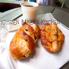 幸せのバナナパン ~TOTSZEN BAKER'S KITCHEN~ 綱島でのランチのあと、隣駅の大倉山公園へ梅の花見に寄りました♪ 登り坂の入口辺りに小さなパン屋を発見!お客さんが絶えない様子~ 入り口にはカフェ席があり、無料のコーヒーサーバーも設置されています(*^^*) 看板商品の~幸せのバナナパン~が焼き上がり、即購入♪ 外側パリッと中はしっとり! これは美味しい!!