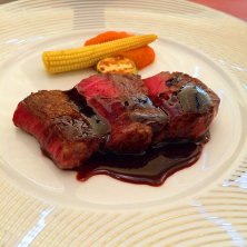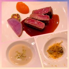 夕食は久しぶりのahill ・季節の野菜 ・フォアグラ ・フォアグラ入りハンバーグ ・フィレステーキ ・焼きカレー 他、玉ねぎクリームスープ、ローストビーフ ジャガイモを巻いたヒラメのフリット。 クリームブリュレ。 お肉美味しかった♬