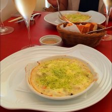 今日はお休み♡ 銀座でこんにちはご飯しに行ったよ! 今回来たのはフレンチ鉄板のお店。カウンター席を予約したから、目の前で調理したものを出してくれるの♡ 最初の前菜は「牡蠣のソテー ポルト酒風味 ミモレットチーズグラタン」 牡蠣が柔らかくてとっても美味しかったぁ~(๑⃙⃘♥‿♥๑⃙⃘)