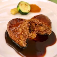 初アヒル 左下の、フォアグラが入ったハンバーグ目当てでした ԅ(¯﹃¯ԅ)♡