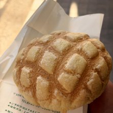 外人さんがメロンパン片手に食べ歩き←良い香りに誘惑されて近くにお店があるんだなとおもい購入!!ふんわり柔らかくうまぁー( v^-゜)♪