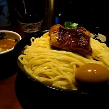 秋葉原に構える【武蔵武仁】に訪問しました。武蔵グループは新宿に総本店を構え、店舗毎にコンセプトとメニューが異なります。武仁は動物系(鶏ガラ.豚骨)+魚介系(鰹.煮干し)の濃厚スープに、100gを超える塊の煮豚が入ったラーメンorつけ麺が食べられます。 券売機を眺めるとつけ麺の種類が豊富にあり、つけ麺,濃厚つけ麺,辛つけ麺,季節限つけ麺のラインナップ。本日はつけ麺ではなく中華そばタイプの《武仁ら〜麺》をポチりました。普通,中盛,大盛同一価格となります。