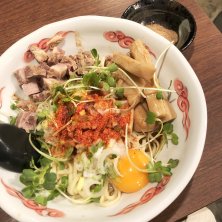 辛まぜそばにトッピングで山椒を。 この組み合わせいいです(^^) スタンプカードいっぱいになったから、サービス二点と言われ、メンマと大盛りに。 でもお店で大盛りをなんだか強調された気がして、 それ、言わない約束〜 一応女子なんですから〜笑