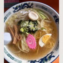 『四十一番』の塩ラーメン、900円。 透き通るような、あっさりとしたスープは、喉元を過ぎると深いコクが感じられます。 麺はしなやかな細麺。 具材はナルト🍥、メンマ、玉ねぎ、長ねぎ、ワカメ、ゆで卵、麩など。チャーシューは入りません。 チャーシューが入ると、この繊細な味わいのスープの味が損なわれるような気がします。