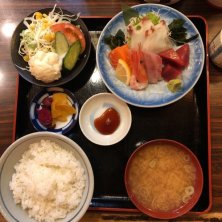 本日は休日出勤につき、外でランチ。 いやー、古町の下手は休日ランチほとんどやってないなー(^◇^;) 小さいお店ではないけど、そんなに探してる時間もなかったのでよさ来いさんで。 刺身定食! ブリもマグロも美味しいー! 今日は体力使うのでしじみの味噌汁が嬉しい(^○^)